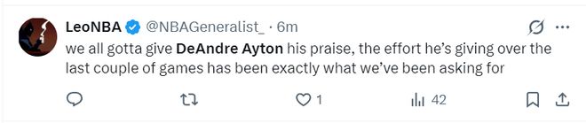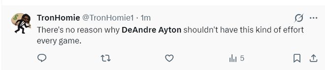 众所周知此前艾顿跟湖人教练组闹出了一些不和流言(不愿意当卡佩拉那样的蓝领),雷迪克一度让他的轮换时间不如海斯,艾顿也曾表达不满,他上一次拿到20+的比赛还要追溯到2月25日。或许艾顿与自己达成和解,他这场比赛非常积极主动。